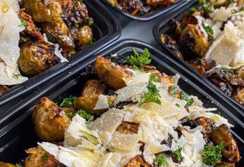 Truffle Infused Brussels Sprouts with Celery Root and Shaved Parmesan