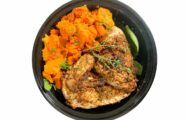 DAIRY FREE, GLUTEN FREEHouse Glazed Sweet and Tangy Chicken Thighs, Steamed Brown Rice and Crisp Asian Veggies, Fresh Pineapple Teriyaki Salsa. Made with Tamari Sauce which is GLUTEN FREE!