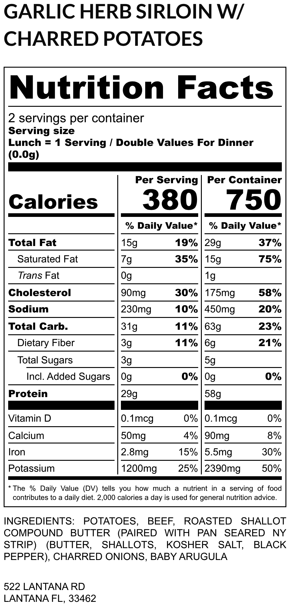 Enjoy a restaurant-quality pan-seared sirloin steak paired with perfectly cooked potatoes, charred onions, and fresh baby arugula for a balanced, flavor-packed meal. This tender, flavorful sirloin steak is finished with a rich roasted shallot compound butter, made with real butter, caramelized shallots, kosher salt, and black pepper. As it melts over the steak, it creates a savory, buttery finish that elevates every bite. Served alongside hearty potatoes and sweet, charred onions, this dish delivers the perfect combination of bold flavor, texture, and freshness.