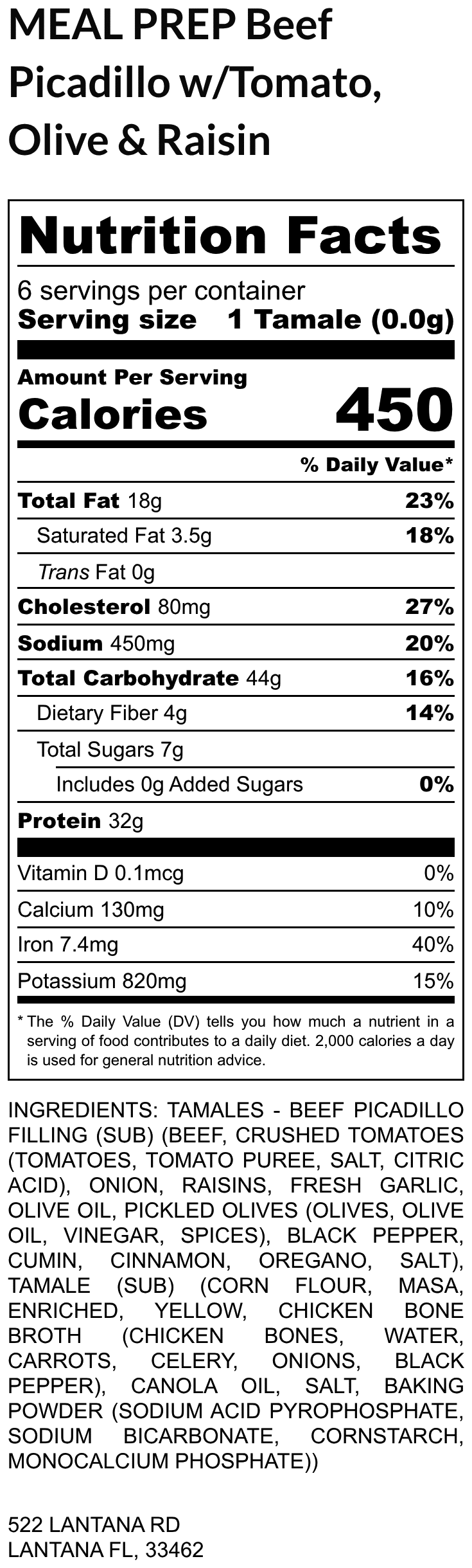 Tamales – Beef Picadillo Filling (Sub) (Beef, Crushed Tomatoes (Tomatoes, Tomato Puree, Salt, Citric Acid), Onion, Raisins, Fresh Garlic, Olive Oil, Pickled Olives (Olives, Olive Oil, Vinegar, Spices), Black Pepper, Cumin, Cinnamon, Oregano, Salt), Tamale (sub) (Corn flour, masa, enriched, yellow, Chicken Bone Broth (Chicken Bones, Water, Carrots, Celery, Onions, black Pepper), Canola Oil, Salt, Baking Powder (Sodium Acid Pyrophosphate, Sodium Bicarbonate, Cornstarch, Monocalcium Phosphate))