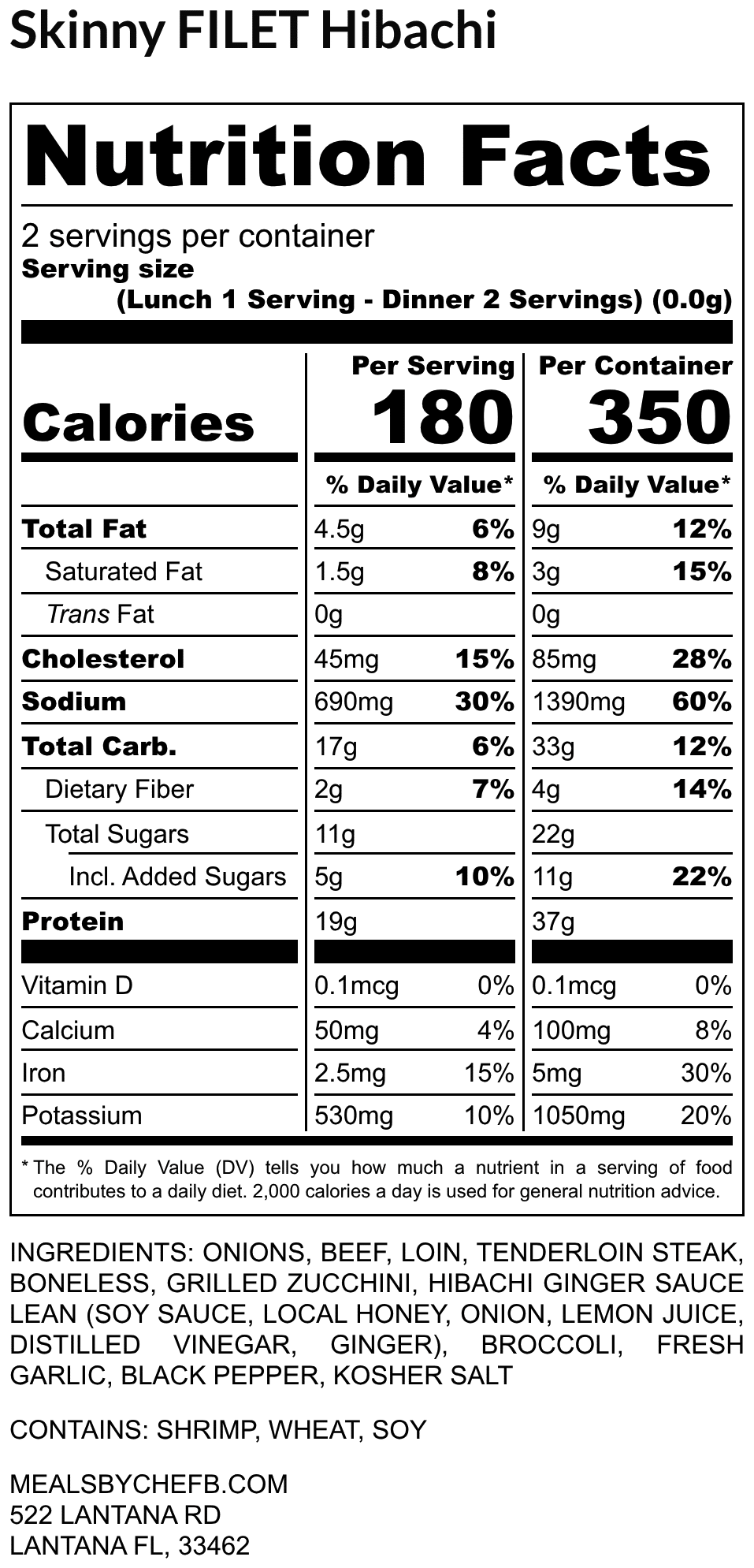 ONIONS, BEEF, LOIN, TENDERLOIN STEAK, BONELESS, ZUCCHINI, HIBACHI GINGER SAUCE LEAN (SOY SAUCE, HONEY, ONION, LEMON JUICE, DISTILLED VINEGAR, GINGER), BROCCOLI, FRESH GARLIC, BLACK PEPPER, KOSHER SALT